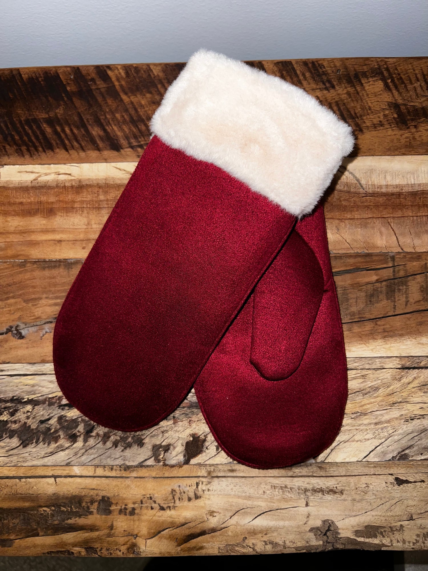 Suede Faux Fur Cuff Mittens Winter Gloves