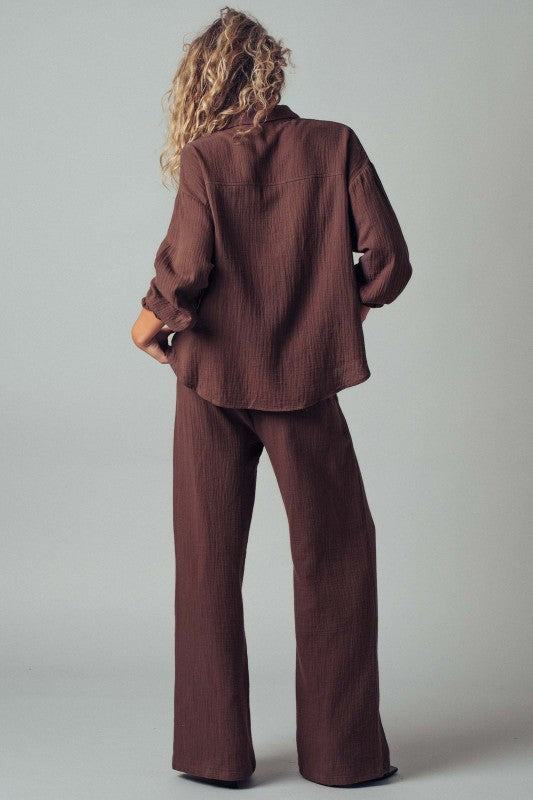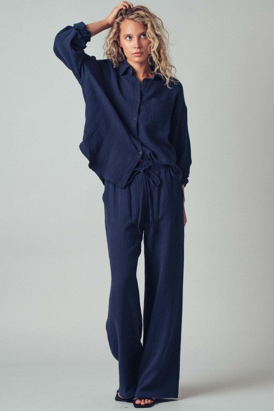 and comfort. - Soft, breathable cotton gauze fabric with a textured finish. - Includes a button-up top for a boho-inspired look.
